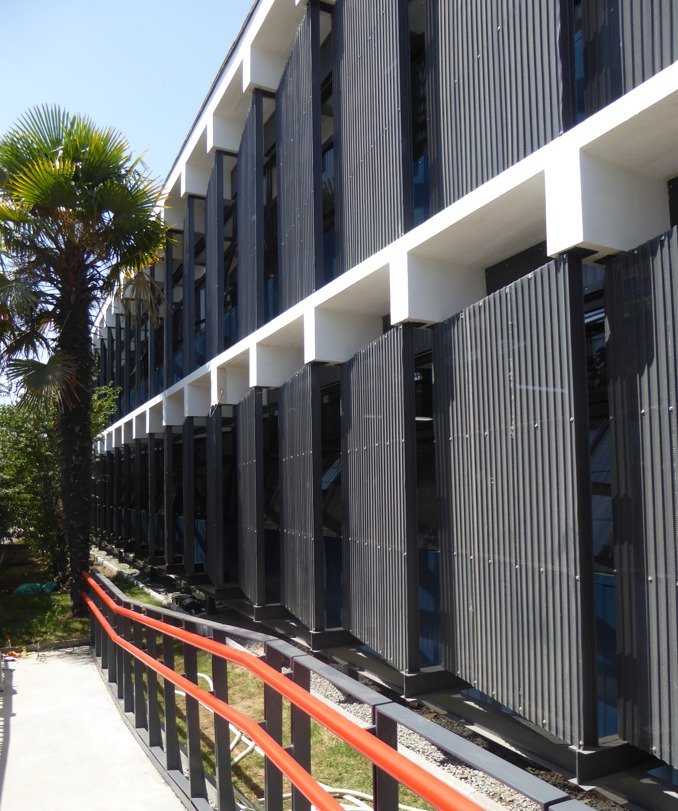- Materialidad: Los paramentos verticales están compuestos por paneles metálicos aislados. La techumbre utiliza paneles metálicos aislados. Las ventanas son termopaneles en PVC y muro cortina. Las puertas son metálicas cortafuegos.